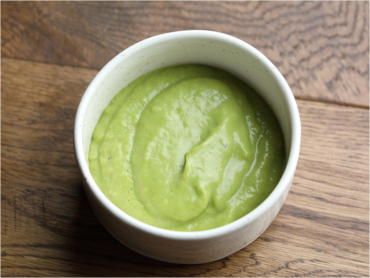 - 【ワカモレのベース】のすべての材料をミキサーに入れ攪拌する。